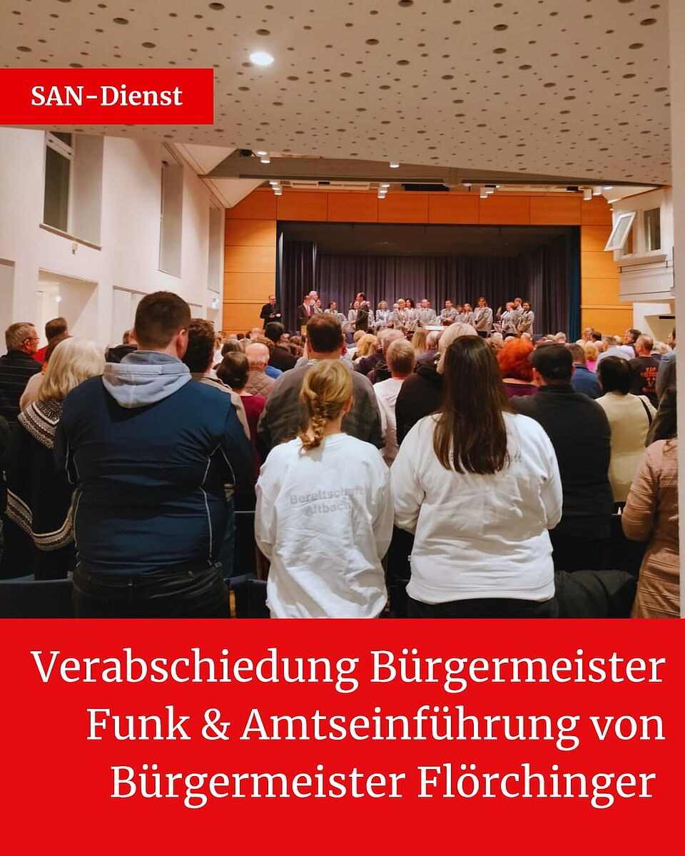 Sowohl am Donnerstag, den 08. Januar, als auch am Dienstag, den 20. Januar waren vier unserer Helfer im Einsatz: Sie nahmen an der Verabschiedung von Bürgermeister Martin Funk sowie an der Amtseinführung seines Nachfolgers, Bürgermeister Sebastian Flörchinger, teil. Glücklicherweise mussten unsere Helfer bei beiden Terminen nicht tätig werden.