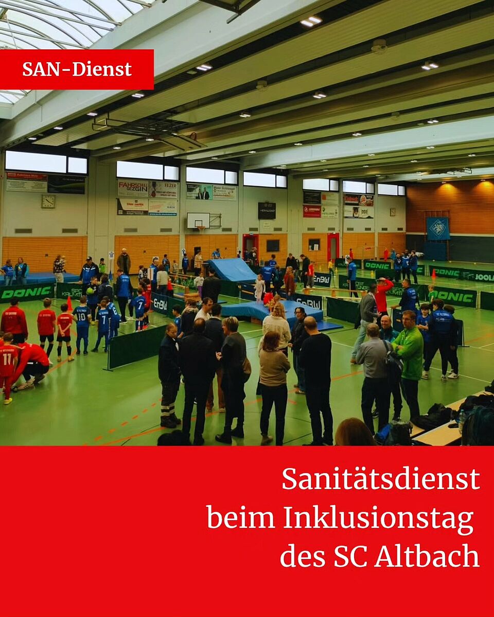 Während unsere JRKler sich auf dem Eis sportlich betätigen, waren zwei Bereitschaftsmitglieder zum Sanitätsdienst am 31.01.2026 beim Inklusionstag des SC Altbach in der Altbacher Sporthalle.