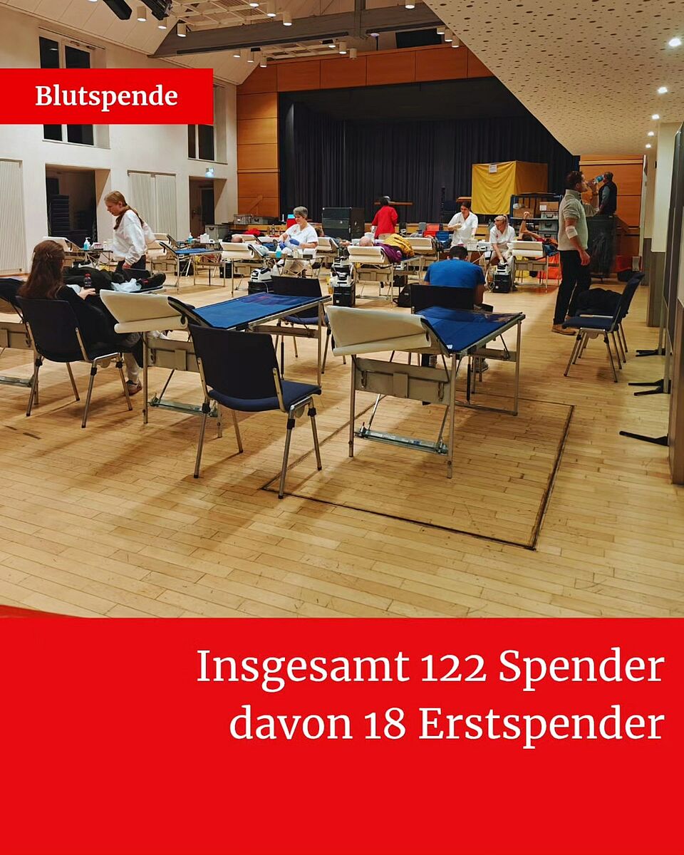 Am Dienstag, den 27.01.2026 fand in der Gemeindehalle Altbach die erste Blutspendeaktion statt, trotz winterlicher Bedingungen mit großartiger Beteiligung! Insgesamt 122 Spenderinnen und Spendern kamen, um mit ihrer Spende Leben zu retten. Besonders freuen wir uns über die hohe Anzahl von 18 Erstspendern, die sich zum ersten Mal entschieden haben, Blut zu spenden. Dieses Engagement ist alles andere als selbstverständlich. Vielen Dank für euren Mut und eure Hilfsbereitschaft!
